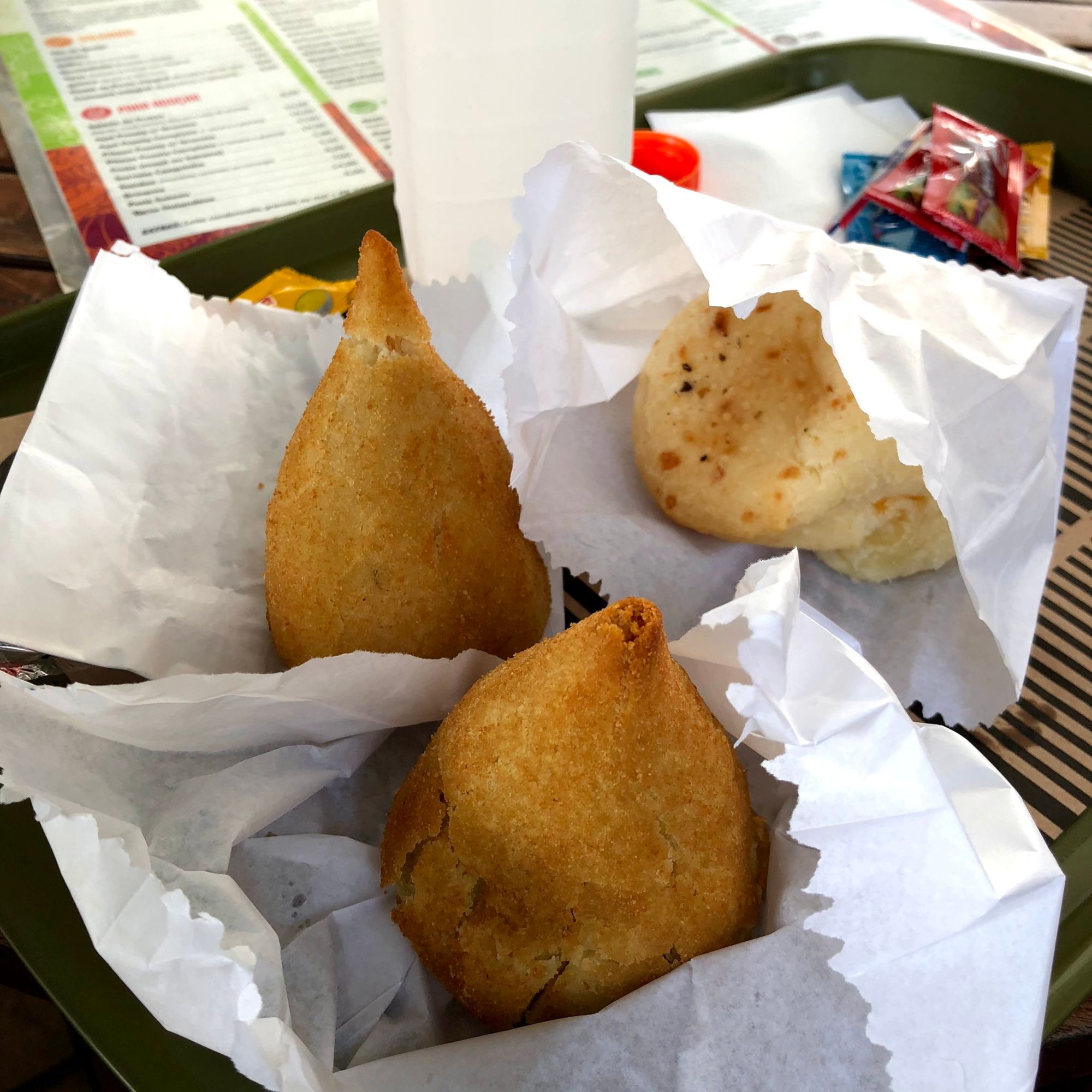 Halfway through our walking tour we stopped for lunch at a snack bar heaving with locals, where Denise introduced us to some of Brazil's tastiest savoury treats. We'd been wondering what the weird cone-shaped things were that we kept seeing in bakeries, and these turned out to be a delicious snack called a coxinha, a kind of deep-fried croquette filled with mashed potato and shredded chicken. We also tried pão de queijo, a type of bread roll stuffed with gooey cheese. Both snacks became staples of our stay in São Paulo, and we wished we'd discovered them a bit sooner.