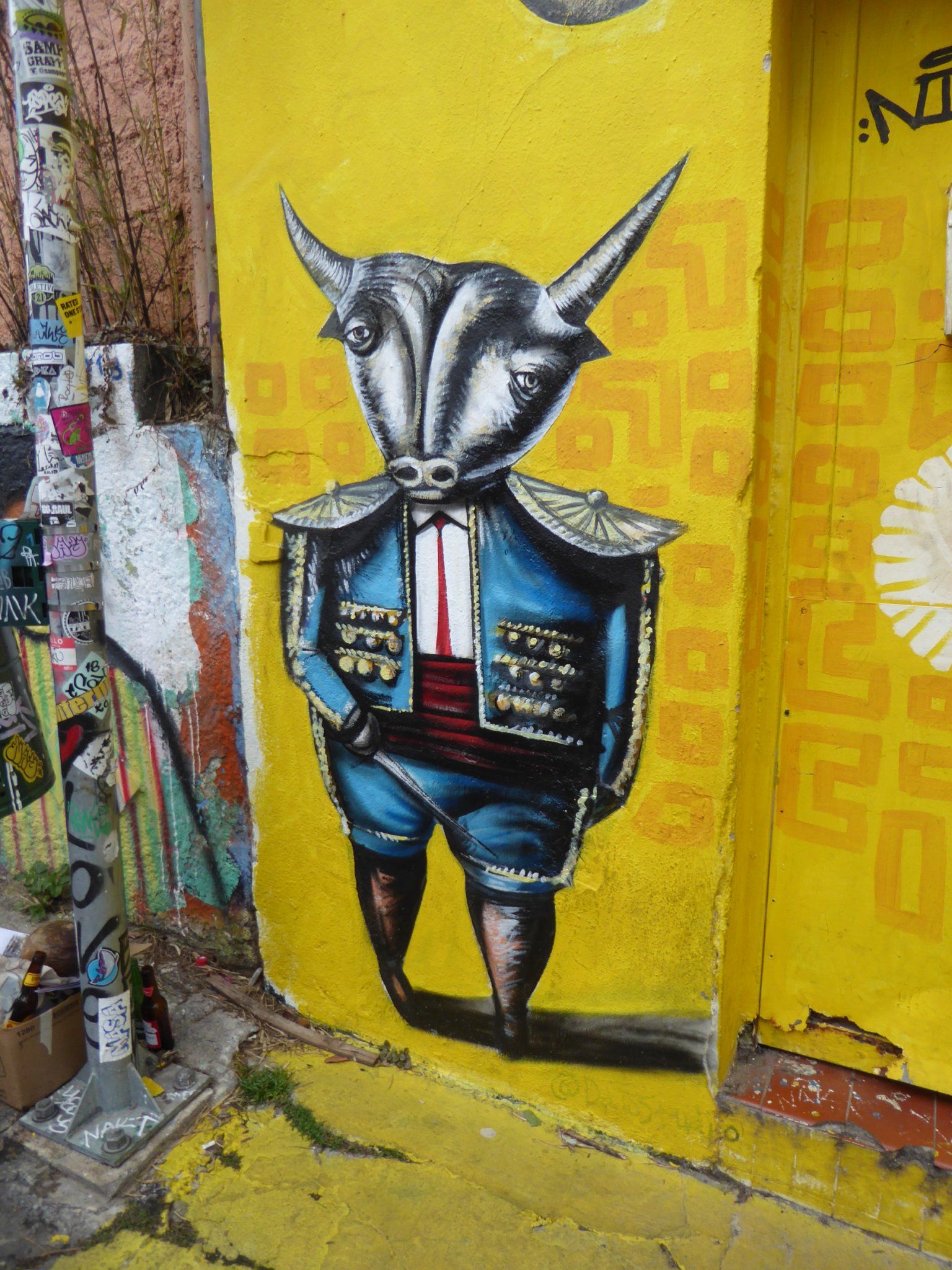After lunch in the park we took a long walk up to Vila Madalena, one of the city's more bohemian neighbourhoods. Vila Madalena's most famous street is Beco do Batman, or 'Batman Alley', which has become known for the street art that plasters the walls. One of the earliest pieces here depicted the caped crusader, and there are still numerous portrayals of him, along with tropical birds, psychedelic patterns and famous artists reimagined as dogs.