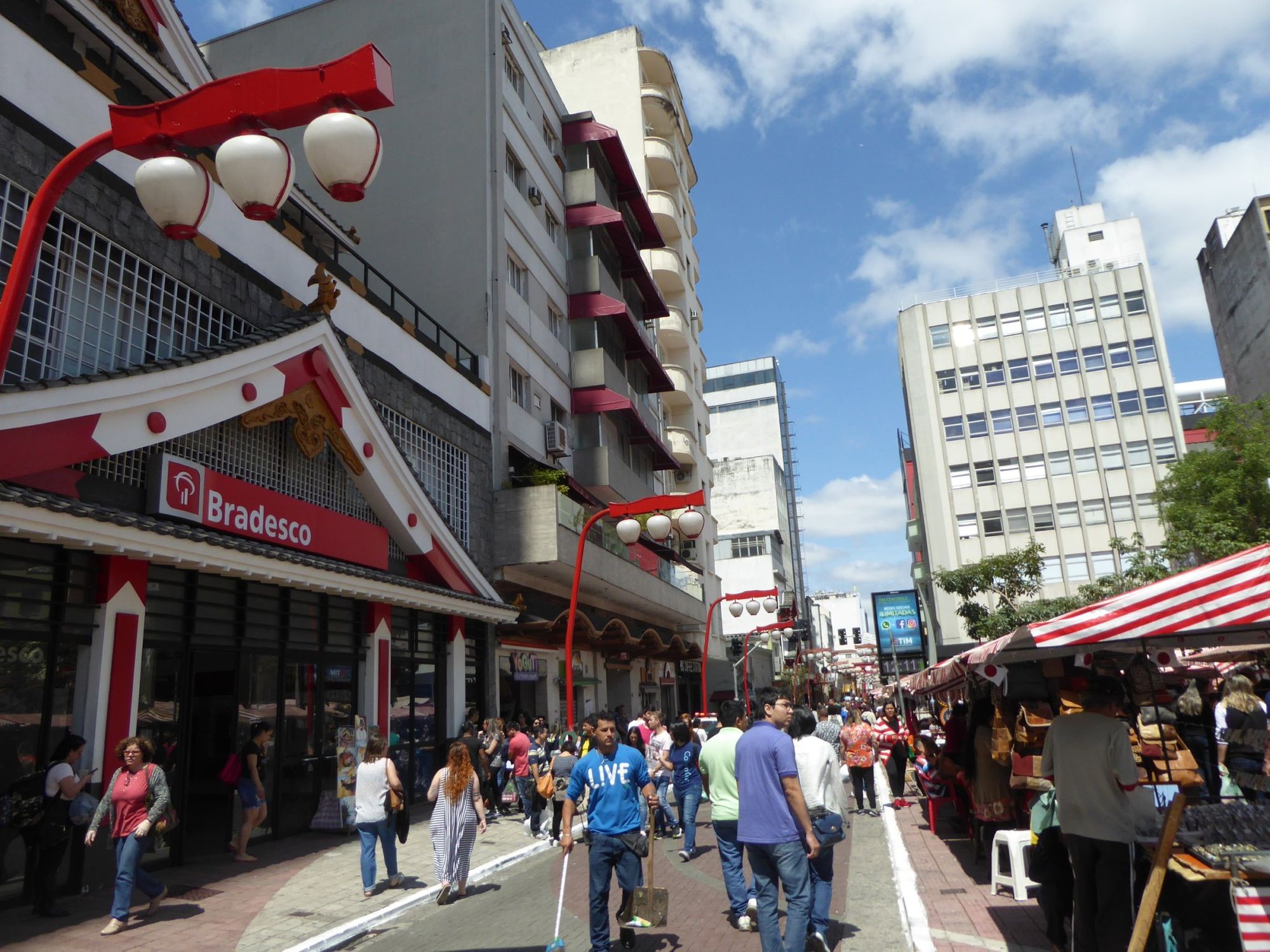 Another popular weekend destination is Liberdade, São Paulo's Japanese quarter. São Paulo is home to the world's biggest Japanese community outside of Japan, and the main square hosts a buzzing market at the weekend. The busiest part of the square is the street food market, where we battled through the crowds to grab some tasty yaki soba noodles. We also tried another typical Brazilian snack, a pastel de bacalhau, a sort of flat pastry filled with cod, plus a couple of Portuguese custard tarts, which I've become a little bit obsessed with since we visited Lisbon last year.